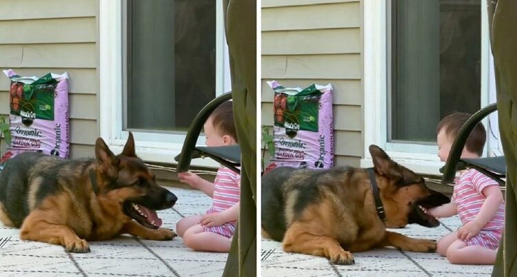 „Ова ми е премногу слатко, па само слушнете како се смее детето, а кучето изгледа среќно“, пишуваат луѓето во коментарите. .