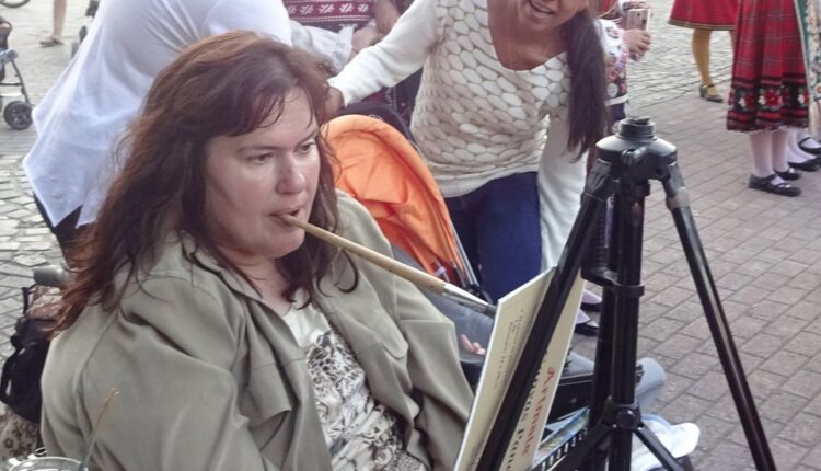 Првата работа која ја прашав оваа самоука уметница која црта со уста и пишува поезија на специјална тастатура, исто така со уста, е дали самата се шминка.