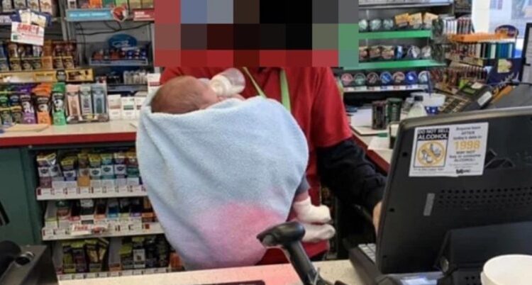 Станува збор за фотографија од продавачка која истовремено работи и се грижи за своето новороденче која ги шокираше луѓето на Интернет. Таа прво се појави на Фејсбук, а потоа и на Редит.