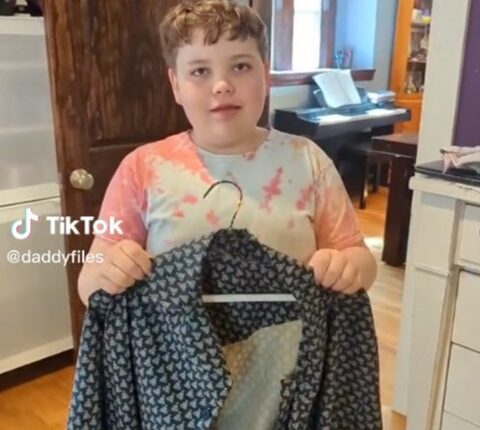 Таткото Арон се појави на својот профил на TikTok @daddyfiles за да се пофали со кошулата што му ја направил неговиот син Сем на час по шиење. Ова сестрано деветгодишно момче од Масачусетс решило да го изненади својот татко со преслатка кошула која ја сошил со свои раце. Видеото за кратко време стана вирално, а моментално има 13,7 милиони прегледи и неколку стотици илјади позитивни коментари.
