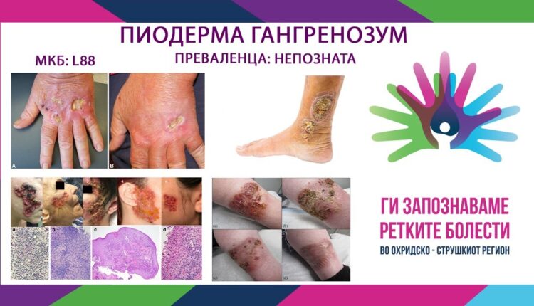 Гангренозната пиодермија се дефинира како болест која доведува до тоа нормалното ткиво да премине во фаза на некроза, што резултира со длабоки улцерации обично локализирани на долните екстремитети. Pyoderma gangrenosum е ретко, деструктивно воспалително заболување на кожата од кое болен јазол или пустула се распаѓа и формира чир кој прогресивно се зголемува. Кога ќе настанат овие улцерации, можна е појава и на хронични рани. Чиревите, односно улцерациите на почетокот имаат изглед на убод од инсект, но понатаму се развиваат во поголеми меури. Многу ретко може да настане смрт, но често предизвикуваат јаки болки и оставаат лузни. Склоноста на создавање чести нови улцерации, односно рани, вклучувајќи ги и раните од оперативните зафати, се нарекува патергија. Лезиите можат да се појават или во отсуство на некое очигледно основно нарушување или во асоцијација со други болести, како што се улцеративен колитис, Кронова болест, полиартритис (воспаление на неколку зглобови заедно), гамопатија, васкулитис, леукемија и други состојби. Болеста за првпат е идентификувана во 1930 година. Иако, болеста може да ги зафати сите возрасни групи, најчесто се јавува кај личности помеѓу 40-та и 50-та година од животот.