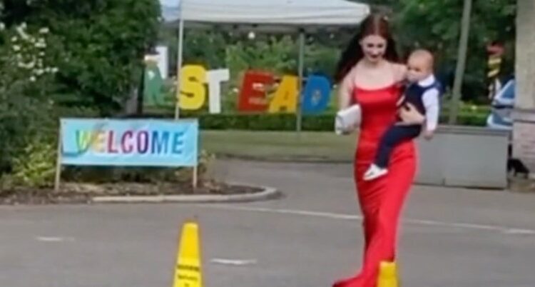 Тинејџерката Ешли Хејзелтон ги изненадила сите кога се појавила на матурата во придружба на својот едногодишен син.