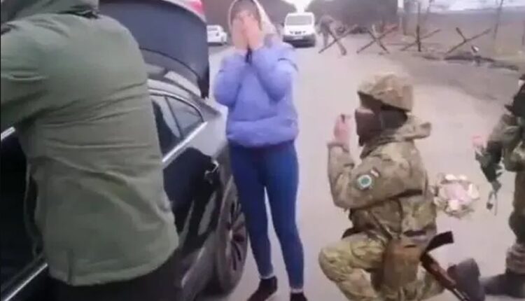 Предлог за брак се случил во Фастив, во близина на Киев, додека војниците ги проверувале цивилите на воениот контролен пункт.