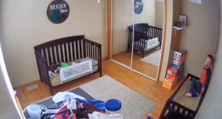 Корисничка со прекар missmoose14 објави видео од безбедносната камера од детската соба на TikTok. Нејзиниот мал син Брејден, од предучилишна возраст, се шета низ креветчето иако веќе треба да спие.