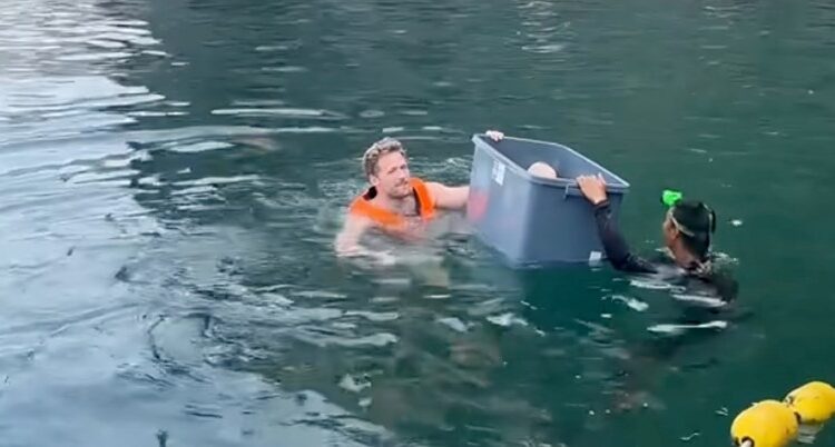 Тие објавија видео на Тик-Ток на кое се гледа како поминуваат низ пештерата пливајќи додека нивното бебе е во пластична кутија. Видеото досега собра повеќе од 530.000 прегледи и илјадници лајкови.