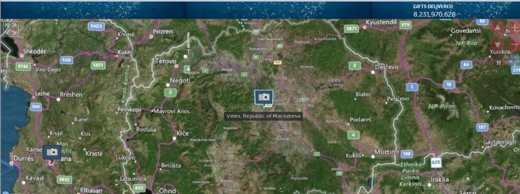 Можете да го следите и вие, со тоа што во Македонија местото за испорака на подароците е – Велес, односно, Велес е означен со линк кој води до информации за градот на Википедија.