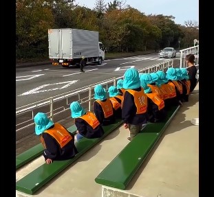 Во Јапонија, децата учат за безбедност во сообраќајот преку практични, интерактивни демонстрации во наменски центри и во училиштата, а не само од учебници. Тие учествуваат во реални симулации на сообраќајни сценарија, учат како се однесуваат возилата и вежбаат преминување улици и користење пешачки премини под водство на безбедносни службеници.